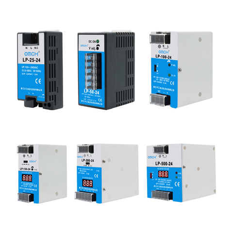 OMCH LP Series 25W-500W แหล่งจ่ายไฟแบบ DIN-Rail ประสิทธิภาพสูง12V 24V อินพุต AC-DC 220V สำหรับใช้ในอุตสาหกรรม